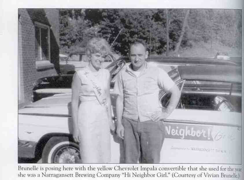 This week we are paying homage to one of the original Hi Neighbor Girls. Vivian Brunelle is from the North Shore in Mass and enjoyed her time as a Hi Neighbor Girl for Gansett in 1962. It was the golden age indeed. She was able to use the Chevrolet Impala convertible pictured above as her own car and hung with some local celebrities like Massachusetts governor Endicott Peabody pictured below. Not a bad gig and not all that different from our Gansett Girls today. Expect they get to ride in the Gansett van and SUV in parades instead of a convertible. Maybe we'll have to get one next.
