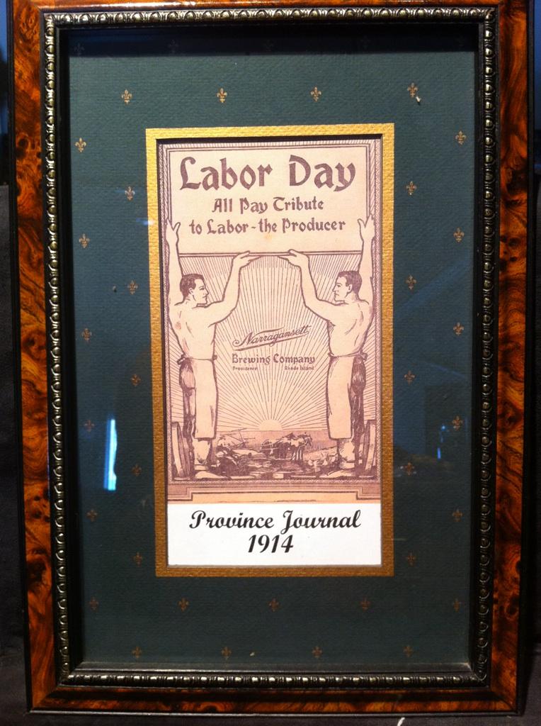 Narragansett Brewing advertisement in the 1914 Labor Day edition of the Providence Journal. If you look closely it says Narragansett Brewing, Providence, Rhode Island. Pretty cool find at the Rhode Island Antiques Mall in Pawtucket. Happy Labor Day to all on this day in 2012.