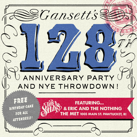 On December 29th we're turning 128! Crazy, right? We’re throwing a big Anniversary and New Year’s Eve bash right down the street from the Brewery at The Met in Pawtucket. We’ll have games, raffles, cake, and best of all, live music from The Silks and Eric and the Nothing. Ring in the new year right and party with us at The Met!