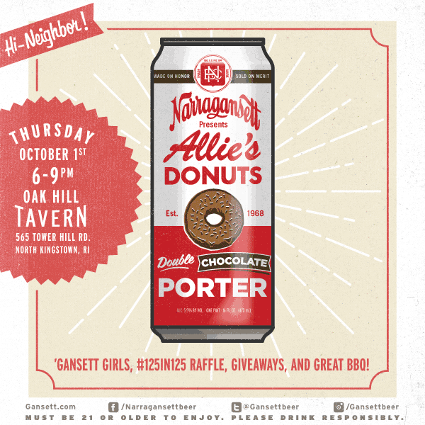 We'll be there with our 'Gansett Girls, plenty of swag, limited edition Allie's Double Chocolate Porter T-Shirts, and we'll be raffling off one of our rare #125in125 Brewery Worker Shirts!