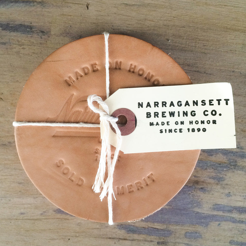 This 4-pack of premium leather coasters are hand cut, pressed, and finished. We only made 100 sets, and once they're gone, they're gone. You can pick up your own here while they last: 'Gansett Shop.