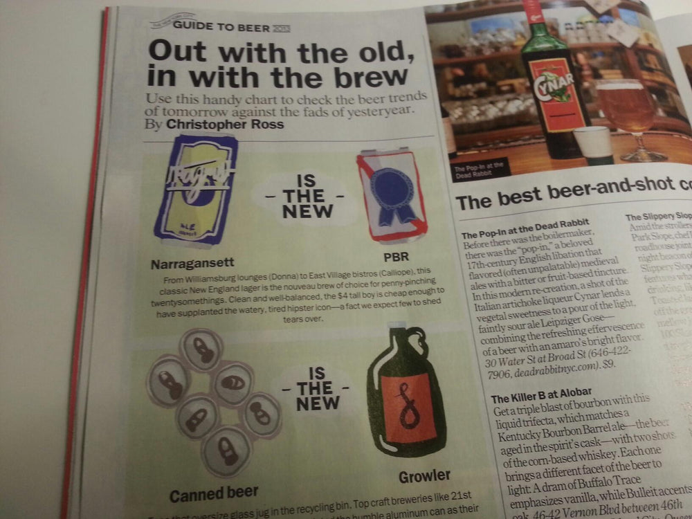 Time Out New York just featured Narragansett in the "Guide to Beer" section of their latest issue, NYC's Greatest Beer. We took a snap shot...