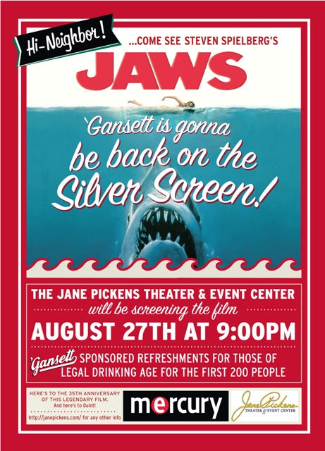We had such a great time at the last JAWS showing we just had to do it again. So when we found out the Jane Pickens Theater in Newport was showing Spielberg's classic, we just had to get involved. It premiere's for one night and one showing only tomorrow August, 27 at 9pm. Get there early for the reception pre-party at 8pm and enjoy a Gansett just like Quint. Come experience one of the greatest films ever made like it's your first time watching it. For tickets and more info visit JanePickens.com.