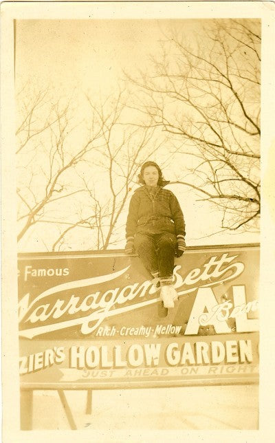 I've been a beer can collector since I was a teen in the 70s, and have always been a big fan of Narragansett cans (I have dozens of variations from the 30s to the 60s), especially the very graphic early cans from the 30s and 40s. A few years ago, when my family was cleaning out my grandmother's estate, we came across this photo and that distinctive 1930s logo jumped right out at me. We're pretty sure it's her as a teenager, but don't know where the photo was taken. I guess it explains how my affinity for 'Gansett may very well be hereditary!