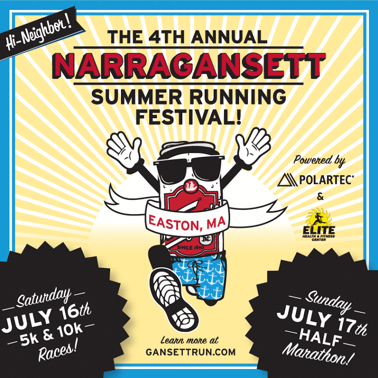 Join us this weekend for the Narragansett Summer Running Festival! On Saturday, July 16th, we will be holding a 5k and 10k. On Sunday, July 17th, we will be holding a half marathon. There will be an after party both days with live music and FREE 'Gansetts for all participants. The races will be held at Stone Hill College in North Easton, MA. Special thanks to our sponsors, Polartec and Elite Health & Fitness Center!