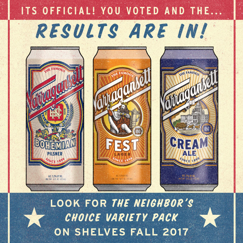 The campaign is over. Thousands of ballots have been counted. Today we swear in the rightful winners of the Neighbor's Choice Variety Pack. You the people have chosen to bring back our Bohemian Pils, Fest Lager, and Cream Ale. Look for them in this Fall's limited edition variety pack alongside our classic Lager! If memory fails you, here's a little on each beer: Bohemian Pils This fan favorite was our first year round offering outside of Lager and Light. It's a flavorful yet easy-drinking, refreshing beer; this brew features the nuanced flavor of Pale malt, Pilsner malt, Wheat malt and Cara Blonde malt up front, balanced with the bitterness of Northern Brewer and Hallertau hops. Tons of flavor and yet still highly drinkable. Fest Lager Not to pat ourselves on the back, but our Fest is a great example of a traditional German Oktoberfest Marzen Lager. It is perfectly balanced with four varieties of malts and two styles of hops. This is an extremely easy drinking autumn seasonal beer, but one you will want to savor as the rich malt profile complements the crisp, but not overpowering, hop flavor perfectly. Cream Ale We're not going to beat around the bush. We enjoy lawnmower beers. Our Cream Ale was brewed with an ale yeast and lagered at 38 degrees for a clean, crisp finish. This beer is clean, flavorful, light, and crisp, making it a real thirst quencher. It's an ode to beers of a forgotten age, when things were just a bit slower' and some would say a little bit better. You'll really enjoy the supreme drinkability of this beer, whether you're mowing the lawn or mowing down duckpins at the local lanes. Keep your eyes peeled - we might give this favorite a new name in 2017...