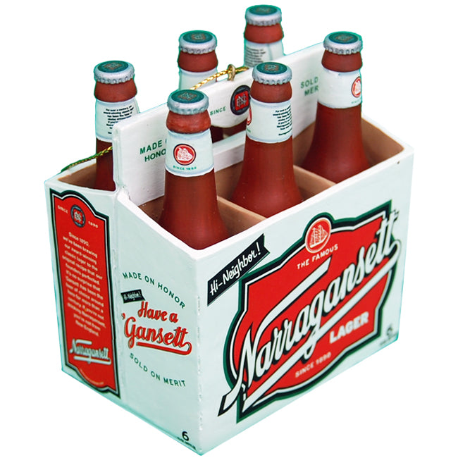 Now isn't that something. New holiday ornaments that are a replica of a Narragansett lager beer 6 pack. Perfect for trimming this year's tree. Here we've been re-using empty tall boys as ornaments the past few years. Thanks to the fine folks at My Little Town we can now decorate with an entire 6 pack of bottles and not tip over the tree. They may be mini, but every detail is there. So click here to purchase one now from our online store for only $19.99, or word on the street is they are available at Benny's stores in Rhode Island. These are sure to be gone faster than you can say, "Hi Neighbor Christmas!"