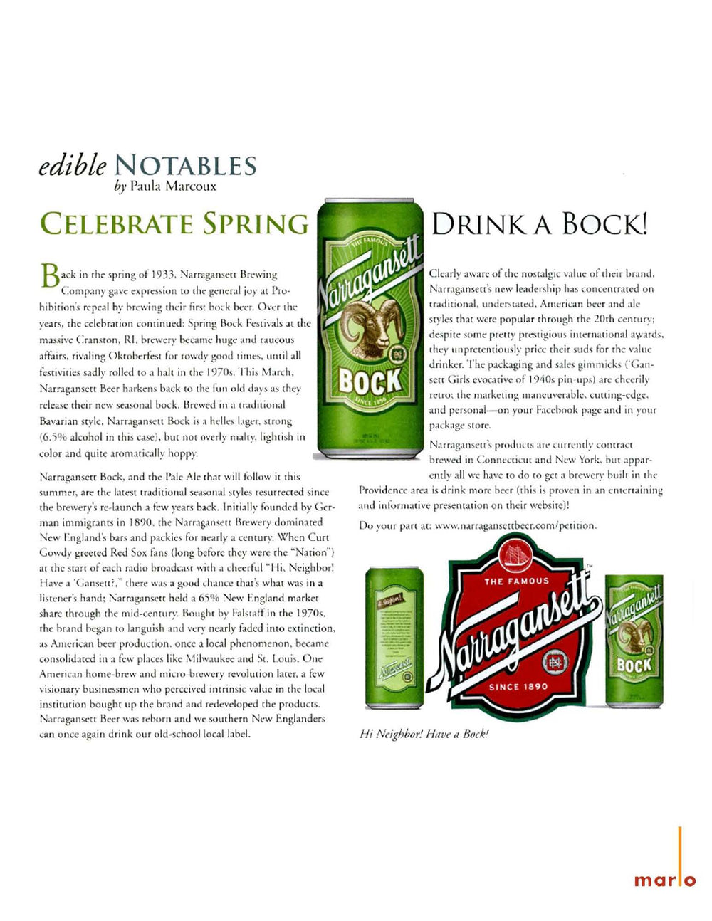 Here's another great write-up on Narragansett in edible SOUTH SHORE. Narragansett bock has been featured in "edible Notables," with a nice profile on Gansett and...