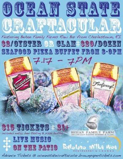Rhode Island local beer tasting & Raw Bar on the patio! Featuring samples & brews from: Foolproof Brewery Narragansett Brewery Grey Sail Brewery Cash Raw Bar on the patio courtesy...