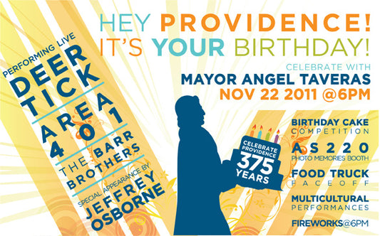 Go Providence. It's your birthday and you're gonna party like it's your birthday. Drink 'Gansett, like it's your birthday! Join Mayor Angel Taveras At Providence's 375th Birthday Party. Over the past 6 months, Providence has celebrated 375 years...