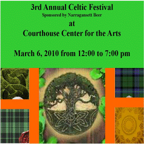 This time of year everyone gets in the green spirit. And we're not talking about the recycling video of Mark. We mean Irish heritage. St. Patrick's Day is on the way and everyone in New England loves to celebrate their Irish Heritage. A day filled with Irish music, food and of course beer. Just about every weekend in March there's a pot-o'gold in one are or another. And the smell of corned beef and cabbage fills the air. So tomorrow down in West Kingstown, RI the Court House Center for the Arts will be celebrating with their 3rd annual Celtic Fest. The 'Gansett Girls are heading their with some Gansett to serve up. So start the St' Ptaricks season off right with us.