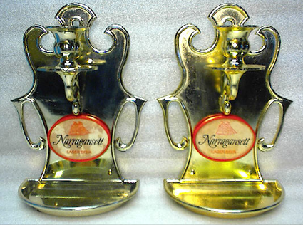 Looking to add the perfect finishing touch to your in-home 'Gansett bar? Or perhaps you need a source of inspiration before embarking on your own 'Gansett-shrine-building journey. Whatever your need, these vintage Narragansett candle holders should do the trick! And here's the best part: You have 21 days left to bid! Or if you can't wait that long, just click Buy It Now. (The eBay seller has some excellent usage recommendations. Be sure to check them out.)