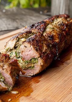5. Line cavity with sausage mixture. Tie roast crosswise with butcher’s twine at 1 1/2-inch intervals, alternating between one end and the other so stuffing remains even.