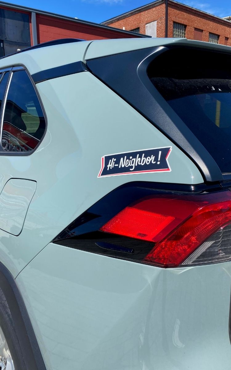 As is the case with most millennials, I get severe sticker anxiety, so deciding where to put a bumper sticker is very challenging. The magnet "Hi Neighbor" is perfect because if I decide later to move it or remove it, I can with no issue! It stays attached great and looks great too!