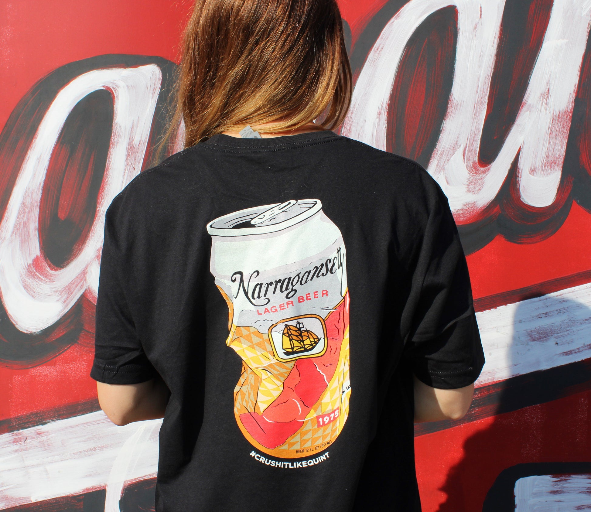 We teamed up with Johnny Clam Cakes for the ultimate #CrushItLikeQuint t-shirt. This is how Captain Quint left his cans. You should too. Wear it with pride and intimidate every oceanographer you meet.